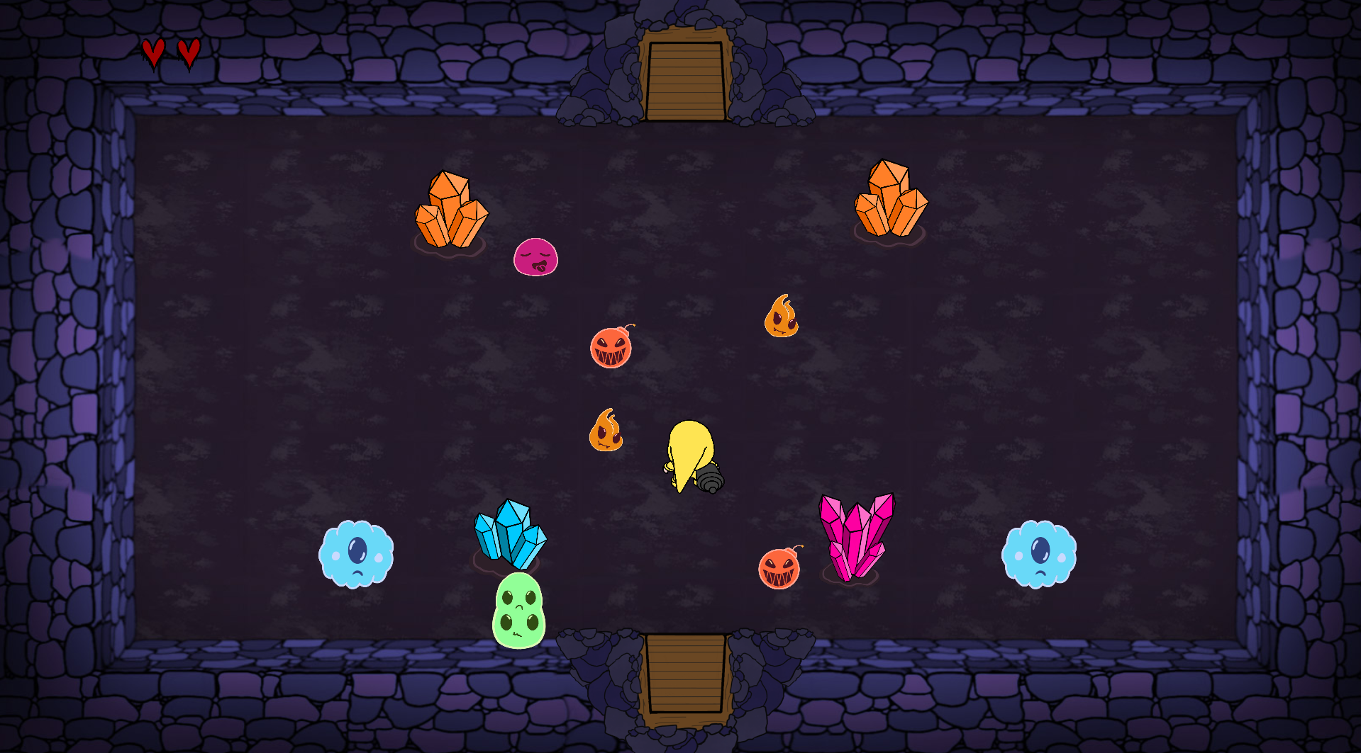 By clicking above, you agree to these terms.Slime mine is a rogue-like top-down shooter that counts with a fixed camera. The game will be handled by rooms, where every room will have different enemies and obstacles. You will be able to upgrade your stats by killing enemies and destroying colored crystals that will be found around the map. You will need to defeat all enemies and get to the last room to win.